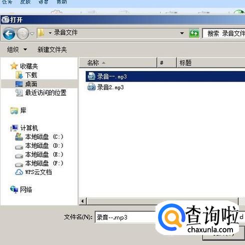 从弹出的对话框中选择MP3格式的音频文件。再点打开。