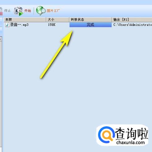 转到转换音频格式的界面。在些界面中点击:开始。