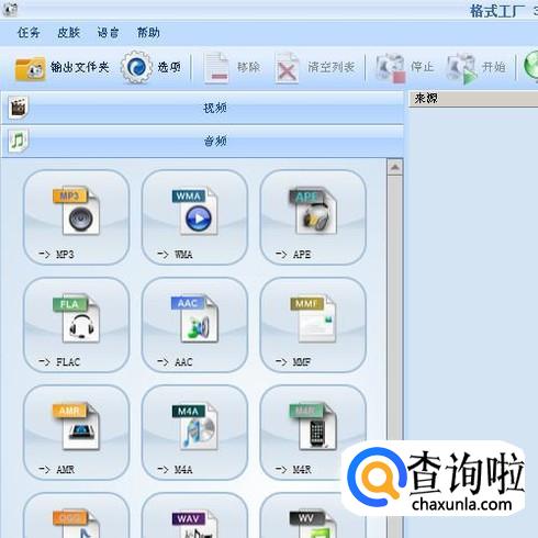 下面用格式工厂这款软件来操作。启动格式工厂,进入到软件主界面,再点开:音频