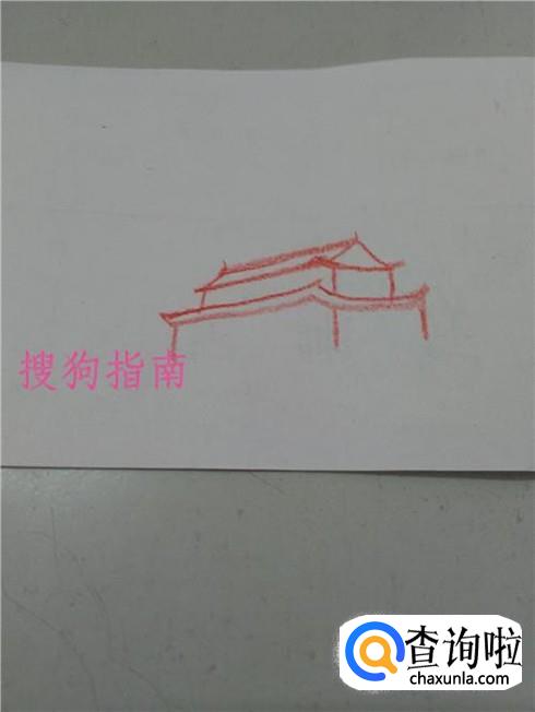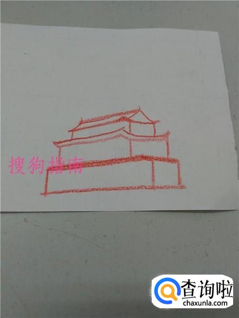 在房檐下面,再画三条竖线,表示中间的城楼。