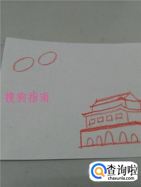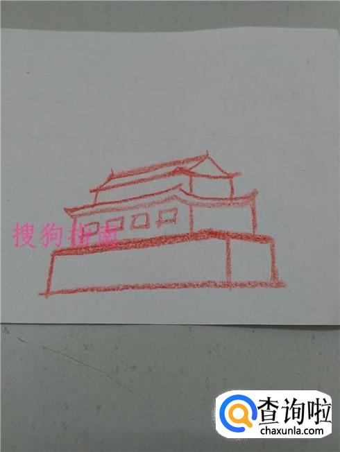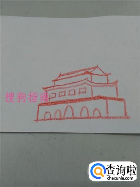 在最下层的城楼上面,画五个向下的U形,表示拱形的门洞。天安门就画完了。