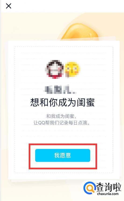 好友接到消息进入链接并点击“我愿意”后,即可建立成闺蜜关系。