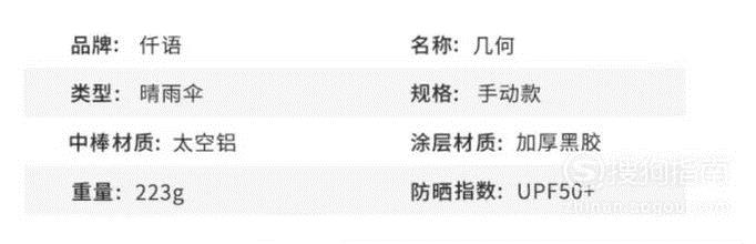 最最重要的一点就是伞的UPF值啦!如果是在网上买伞的话,在详情这里可以看到伞的防晒值,如图1所示。伞的UPF值越高,说明伞防紫外线的能力越好。