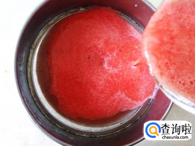 把过滤好的西瓜汁装到盒子,放置冰箱保鲜层3个小时。