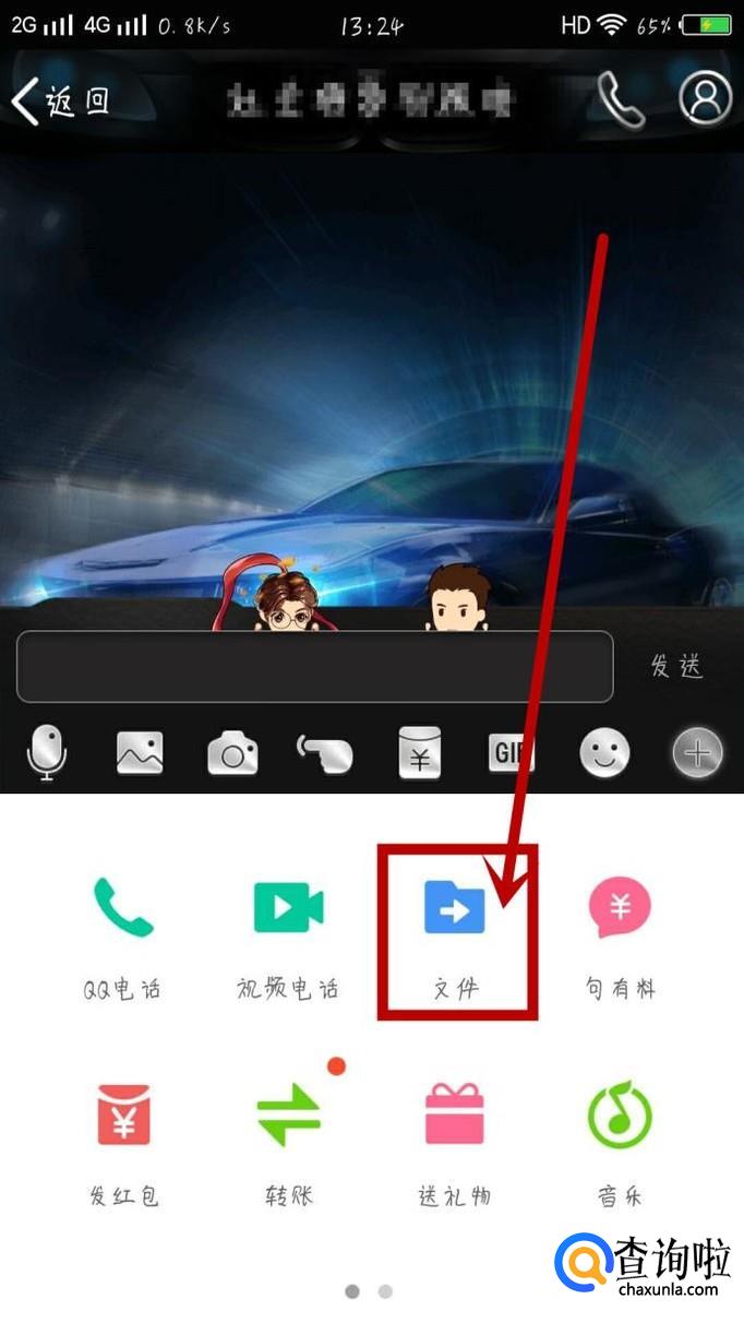 点击对话框页面右下角的“+”,选择“文件”,如图所示。