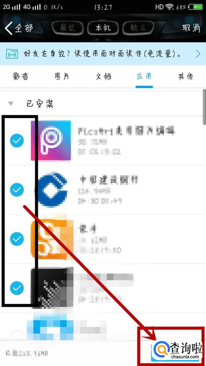 选择需要发送的应用,将它们全部打上对勾,点击发送即可,如图所示。