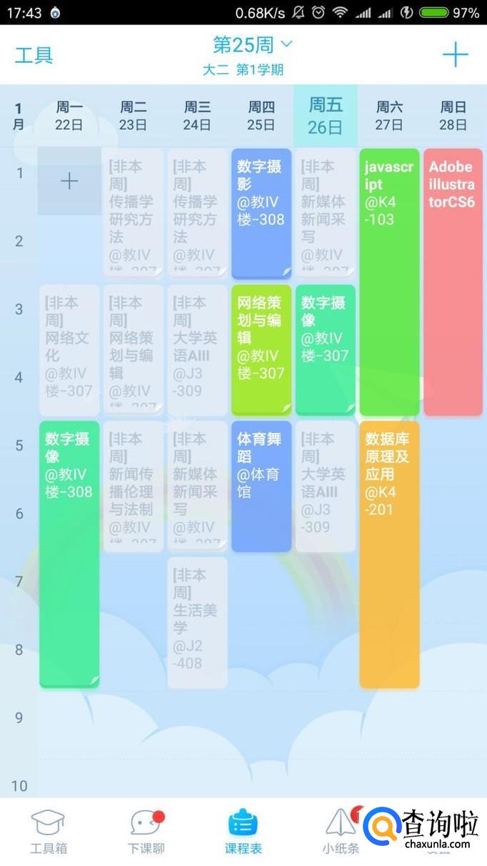 接下来就会出现你想要的课程表了,若是不能出现或者出现完整,就删除之前的课程表重新导入。