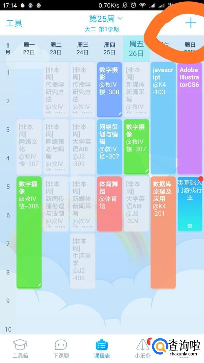 打开“超级课程表”软件,进入课程表选项,点击“+”号。
