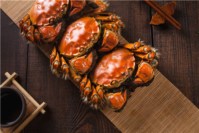 螃蟹肉质细嫩,味道鲜美,营养也十分丰富,蛋白质的含量比猪肉、鱼肉都要高出几倍。大闸蟹是属于河蟹的一种,在我国北起辽河南至珠江,漫长的海岸线上广泛分布,其中以长江水系产量最大,口感最鲜美。