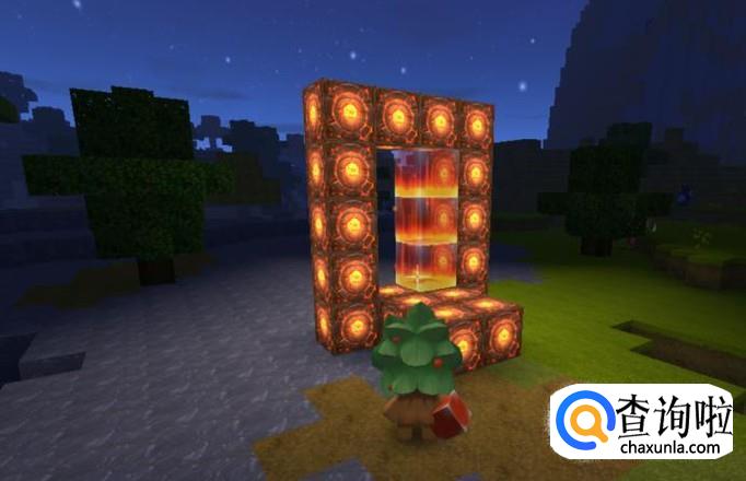 然后先使用地心传送门框搭建出来一个门的形状,门的内部要空出来2x3的空格。