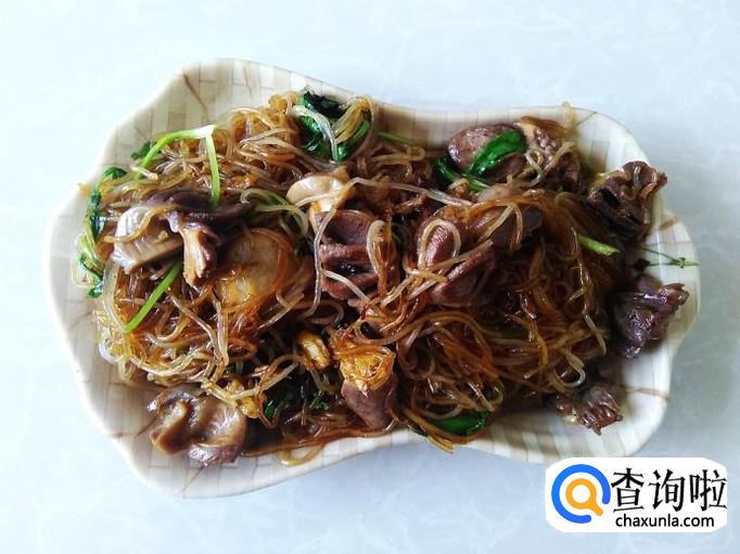 干粉丝100克,鸡胗2个,香菜适量,生抽、老抽适量。