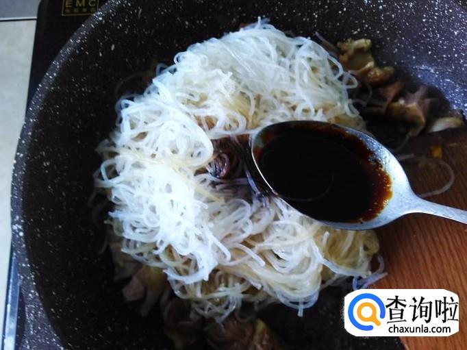 丝粉下锅加1勺生抽、1勺老抽。
