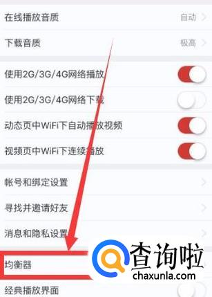 进入之后,点击“均衡器”,进入下一页面,如图所示。