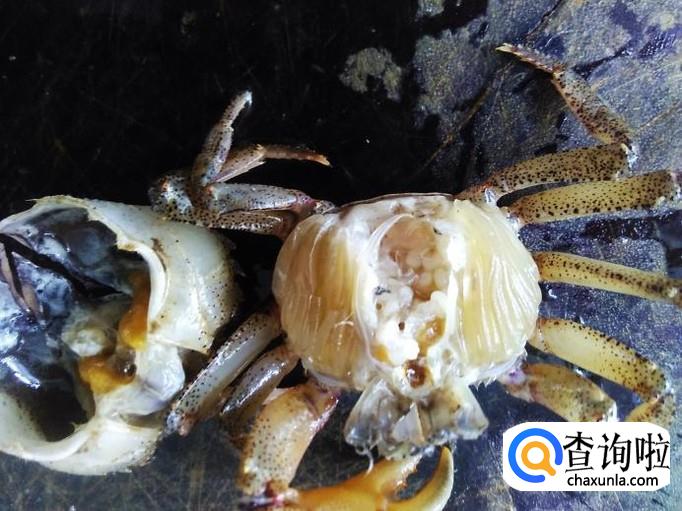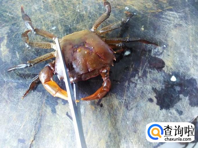 河蟹不能直接用手抓,它会钳手的,所以我是用剪刀夹住,再用刀背拍死它,然后掀开它的盖子冲洗一下,其实用清水活2天里面已经很干净了。
