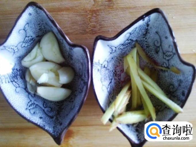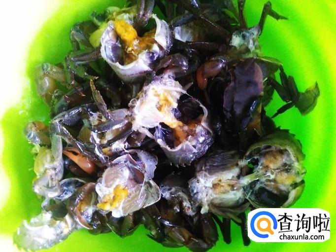 全部把河蟹清洗后放置盘子里,蒜米姜丝准备好。