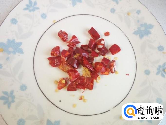 红干椒切成小段,切好葱,姜,蒜,备用。