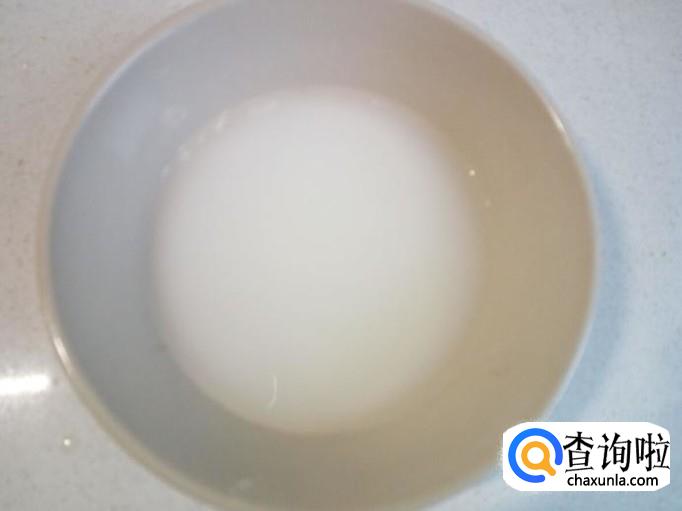 另用一个碗,放入一匙儿淀粉,兑水,勾兑成芡汁。