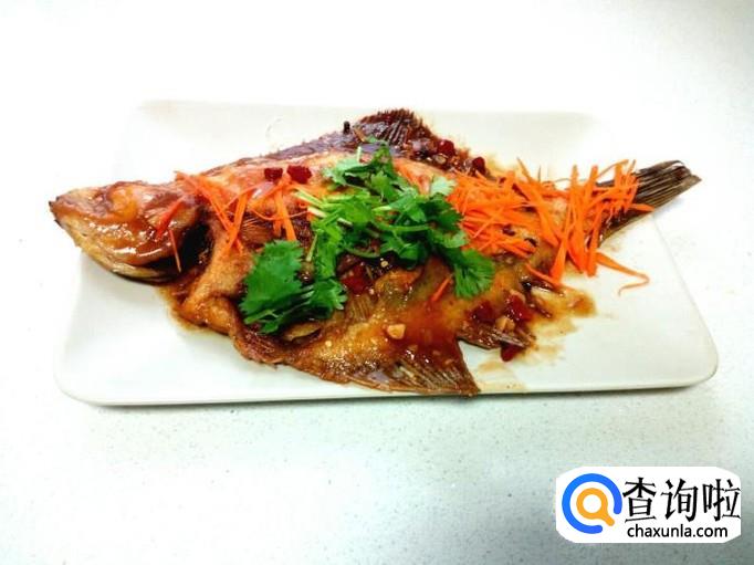 把鱼盛入盘中,再把切好的胡萝卜丝,香菜放在上面就可以了。