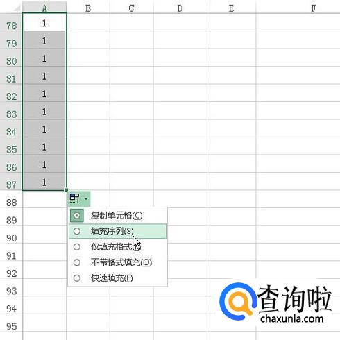 即时,原来全是1的单元格即自动变成了递增的序号。