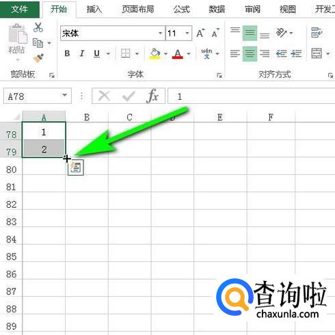 接着,把两个单元格都选中,鼠标再放在2的这个单元格右下角填充柄这里,向下拉即可。