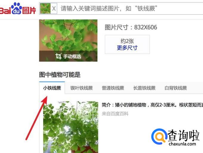 选择好后,就会自动把图片上传并进行搜索的,从搜索结果里,我们就可以看到这个植物的名称了。