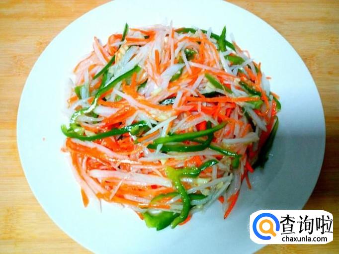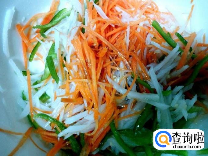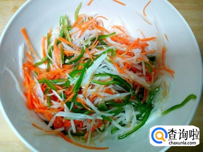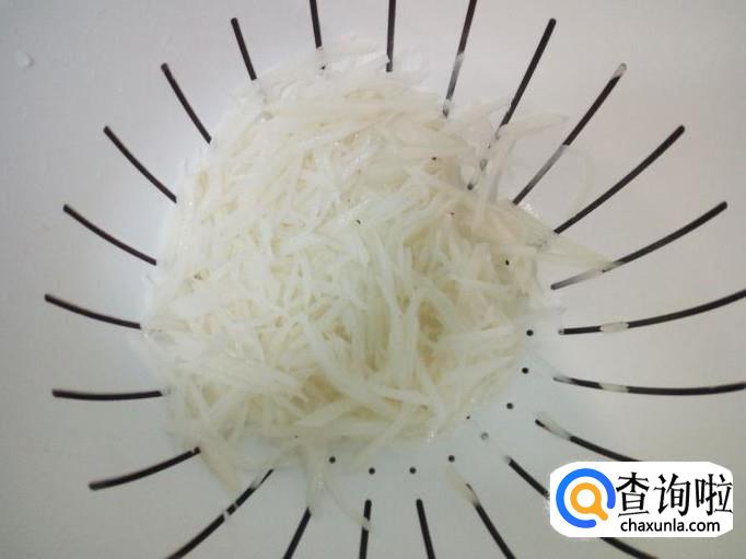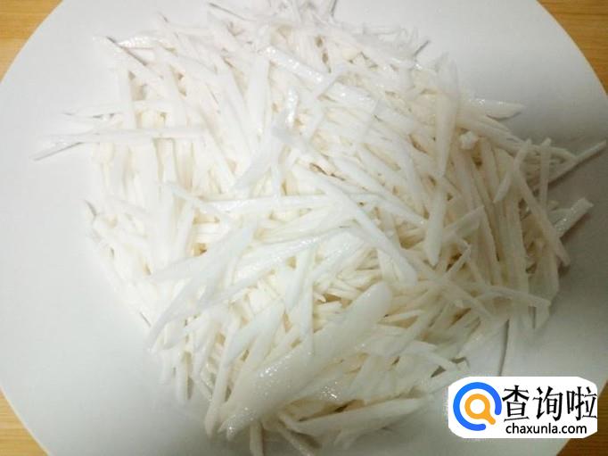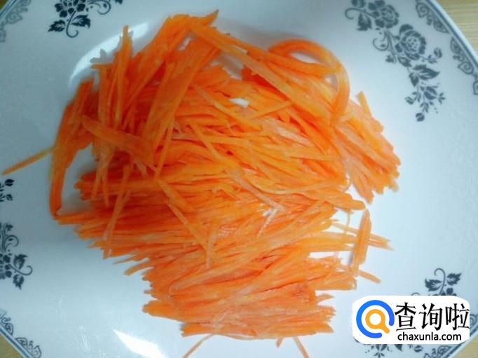 胡萝卜去皮,用水清洗干净,控干水分,切成丝。