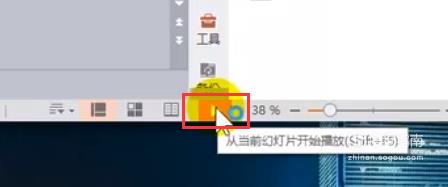 然后点击下方的从当前页开始播放ppt的按钮,让ppt进入全屏。