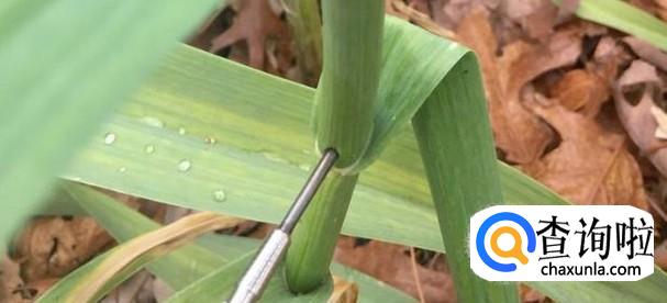 首先我们要先带上手套以免在拔蒜苔的时候把手划伤,我们先用尖锥子从最上面把叶子挨着蒜苔划开,让最上面地蒜苔的先漏出来。