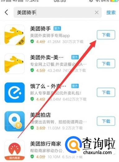 进入之后,搜索“美团骑手”,将其下载,如图所示。