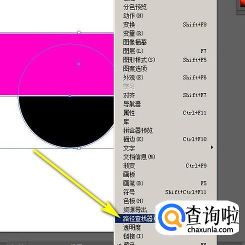 鼠标点击窗口菜单,在弹出的下拉菜单中再点:路径查找器
