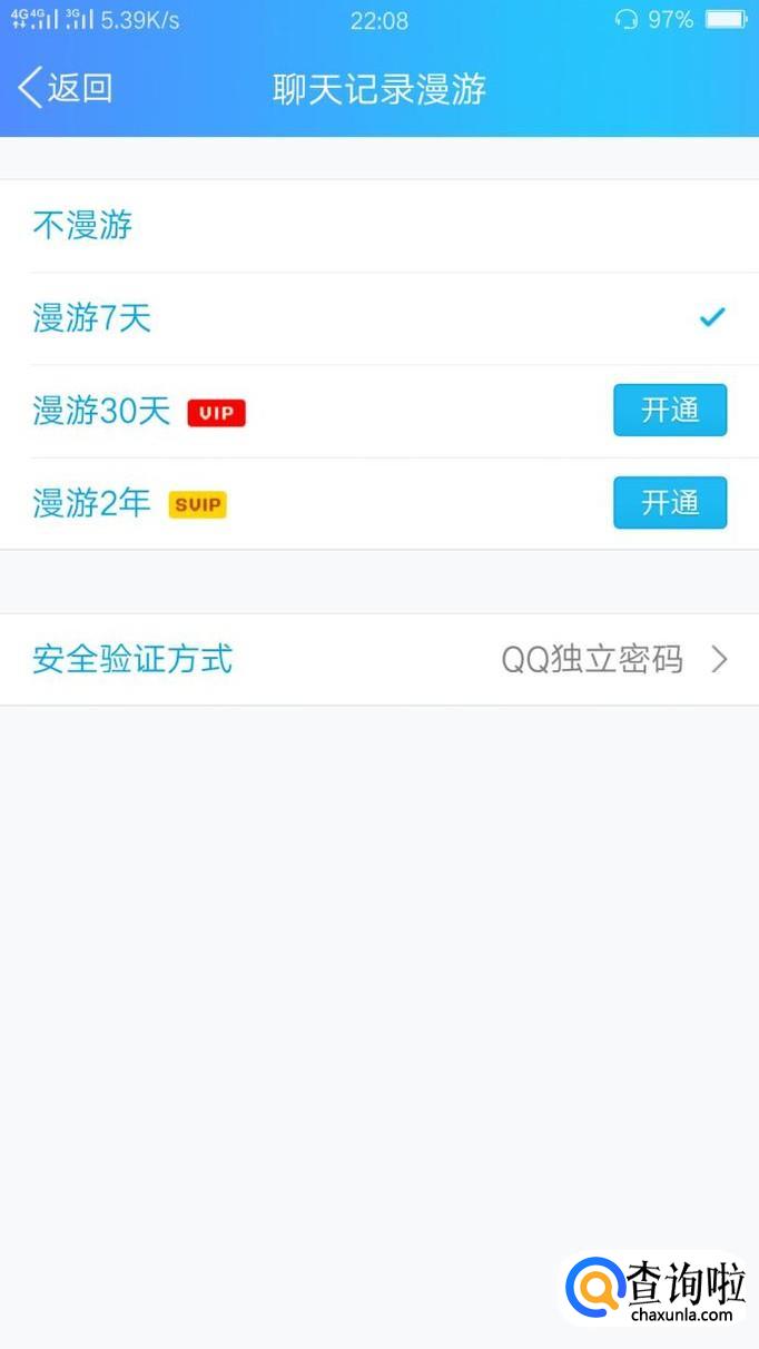 进入之后,我们可以看到近段时间的聊天记录,其实只要是在同一台手机设备上进行聊天,那么聊天记录都会在的。点击右上角的六边形图标,进入把漫游改为7天,如果你有会员或者超级会员,漫游天数就会越多哦!(现在手机QQ是没有聊天记录备份功能了,只能才去漫游保存,希望各位QQ用户能够理解哈!)