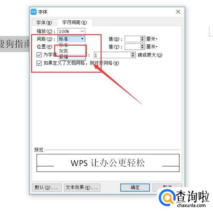 默认的字符间距是标准,我们可以选择紧缩或者加宽,点击下拉选项即可调整。