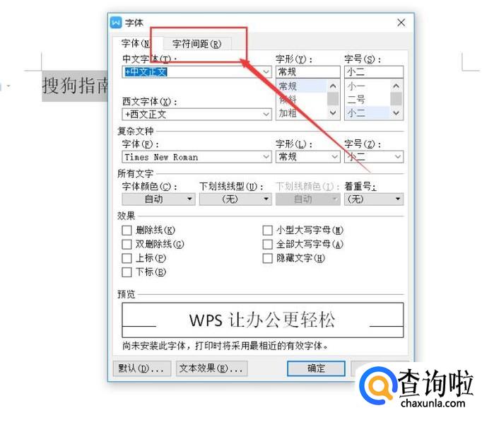 接下来,在弹出的设置选项页面中,选择“字符间距”选项,开始设置字符间距。