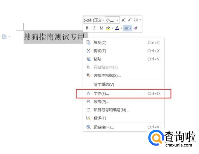 首先,请大家在Word软件中选中需要调整字符间距的文字,然后击右键,选择“字体”菜单选项。