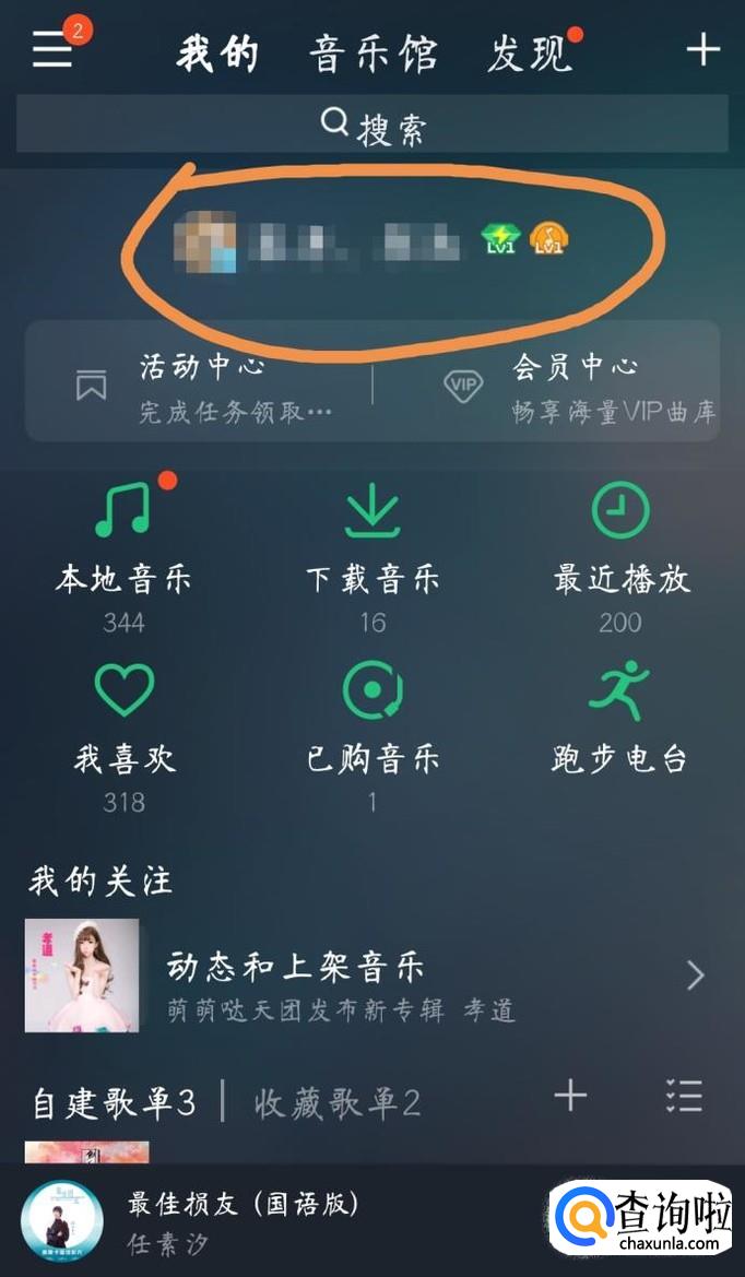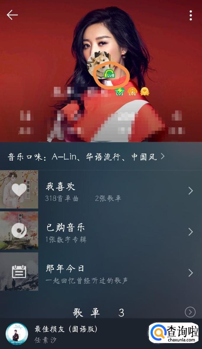 在个人资料界面的头像右下角就可以看到自己的QQ音乐等级了(比如图中的等级为8级)