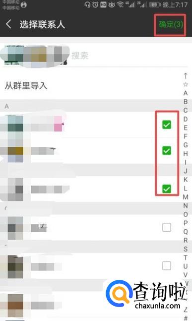 弹出的界面,我们选择我们想要进行分组的人员,然后我们点击确定;