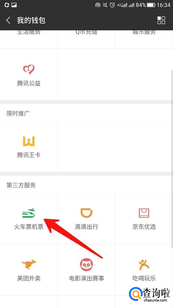 想要快速购买火车票,自然是在网上购买最快。首先打开微信,点击钱包。