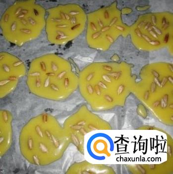 然后我们将搅拌好的面泥倒入专门的器具中,再在其上加一些瓜子,fang