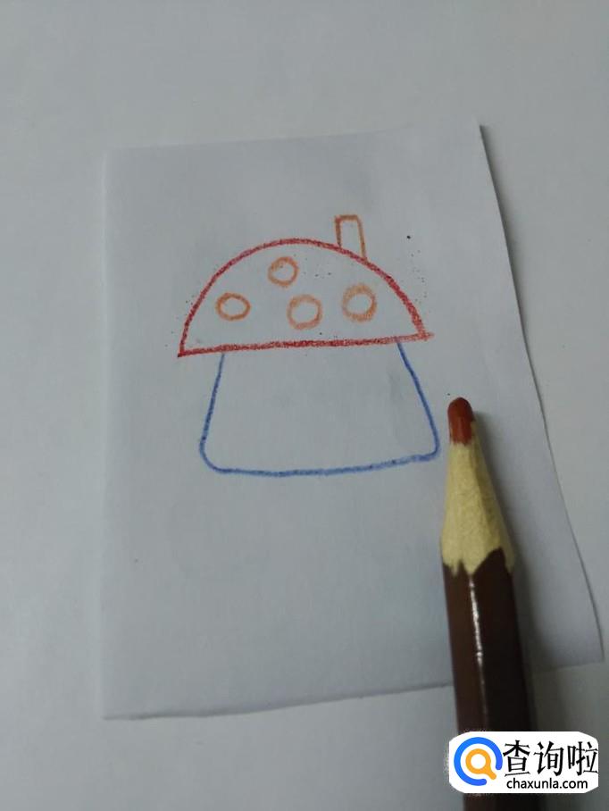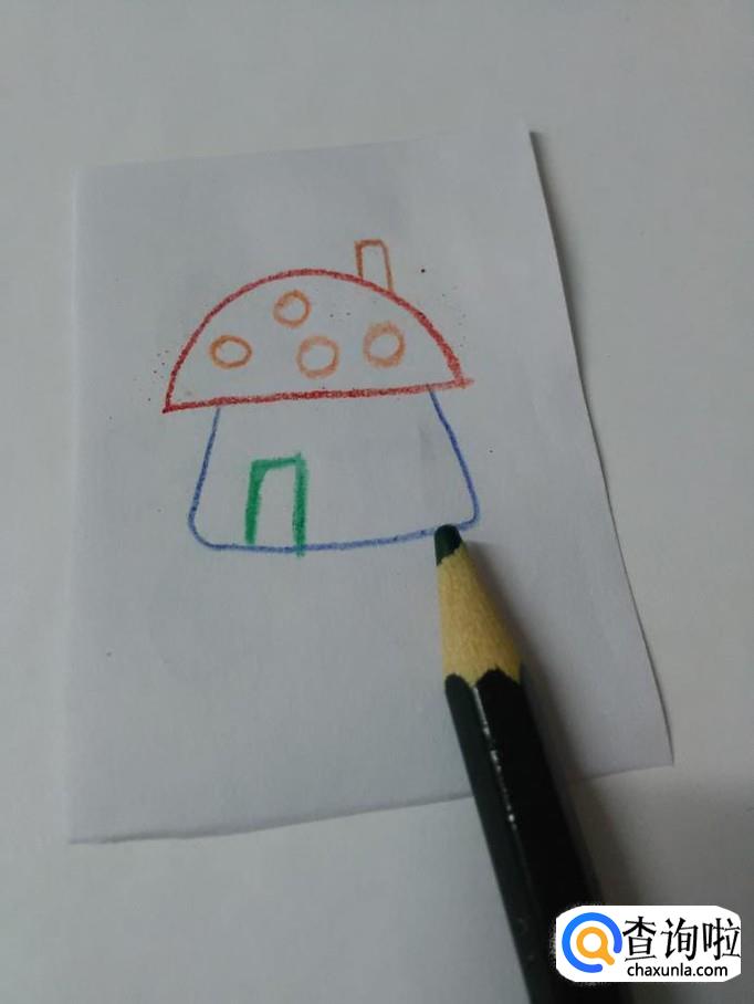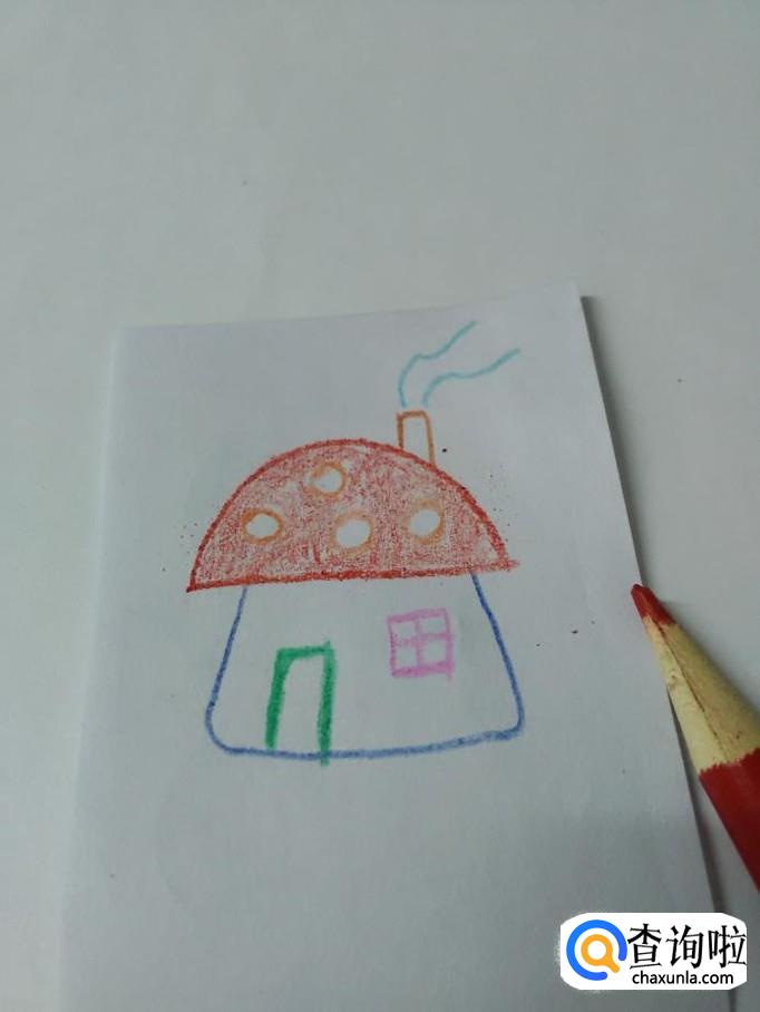 画美丽的房子,要画出房顶、墙壁、门窗和烟囱,下面就来画一栋美丽的蘑菇房子。