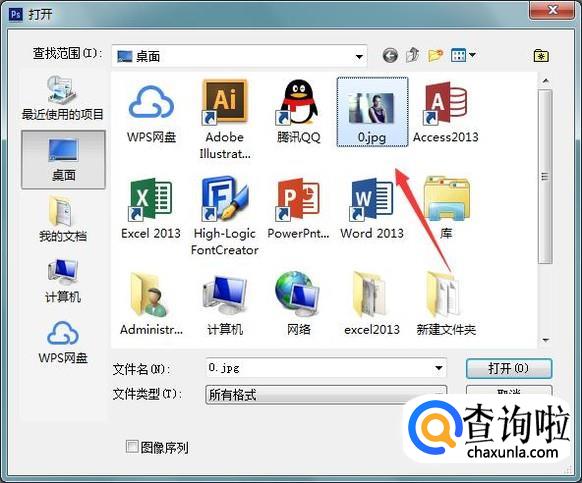 打开ps我们按下Ctrl+O将在弹出的对话框内找到我们需要的图片,如图所示: