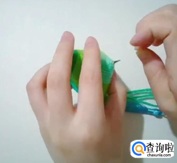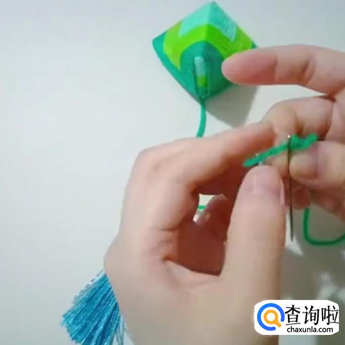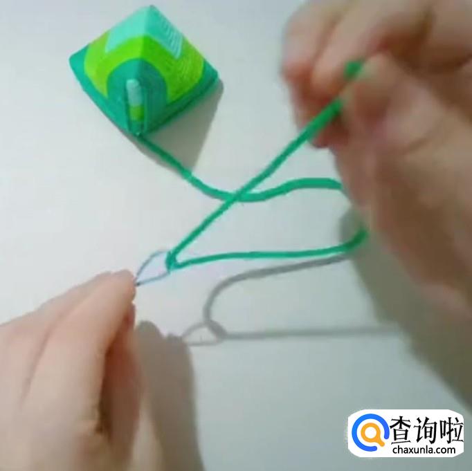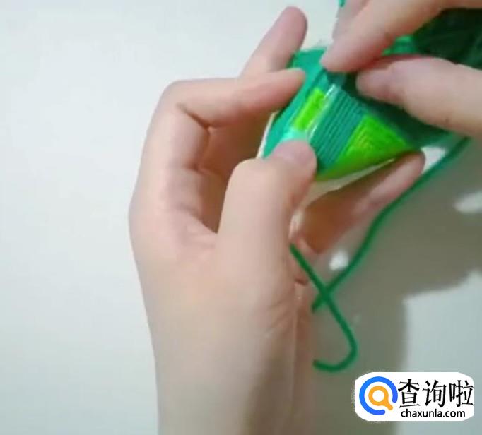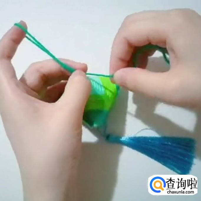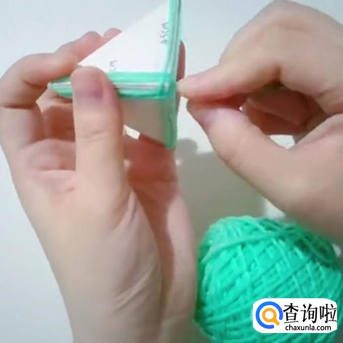 在粽子表面贴上一层双面胶,或者涂一层乳白胶,然后将毛线按照如下图所示的方式绕在粽子型的手工艺品上