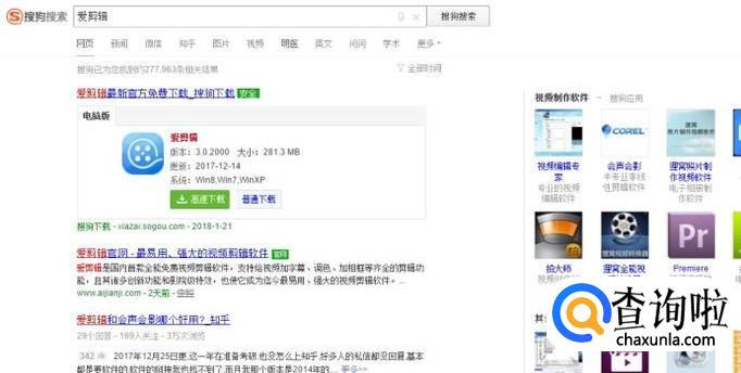 首先打开搜狗浏览器,搜索 爱剪辑 ,选择下载并安装