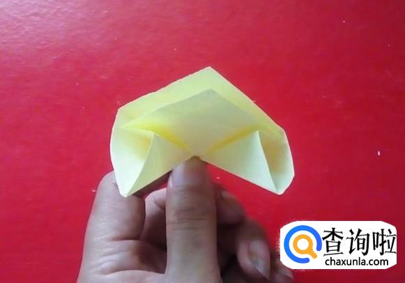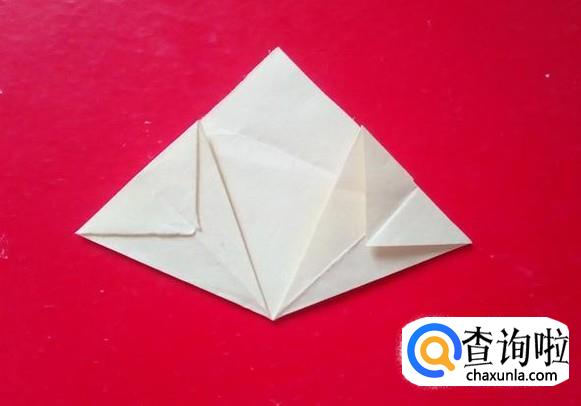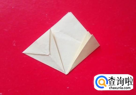 按下面第一图那样把左右两角打开翻起,然后沿折痕压实,如第二图。