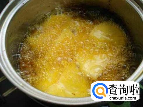 锅里多放点油烧热,把控干水的土豆片放进去炸,酥酥脆脆的时候就可以了,因为土豆片很薄,所以用时会非常短。