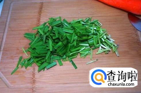 一把韭菜清洗干净,切成长段。