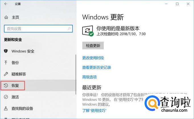 弹出的界面,我们点击恢复;