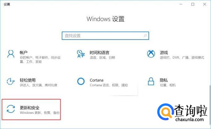 进入设置之后,我们点击更新和安全;