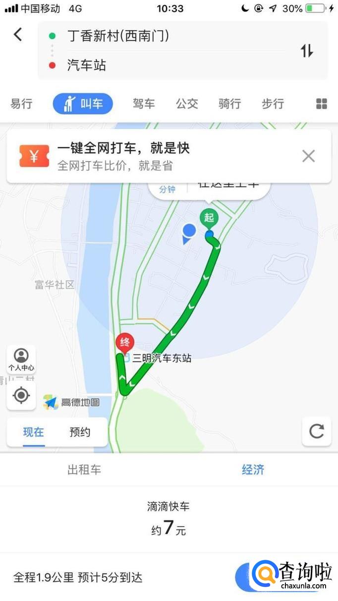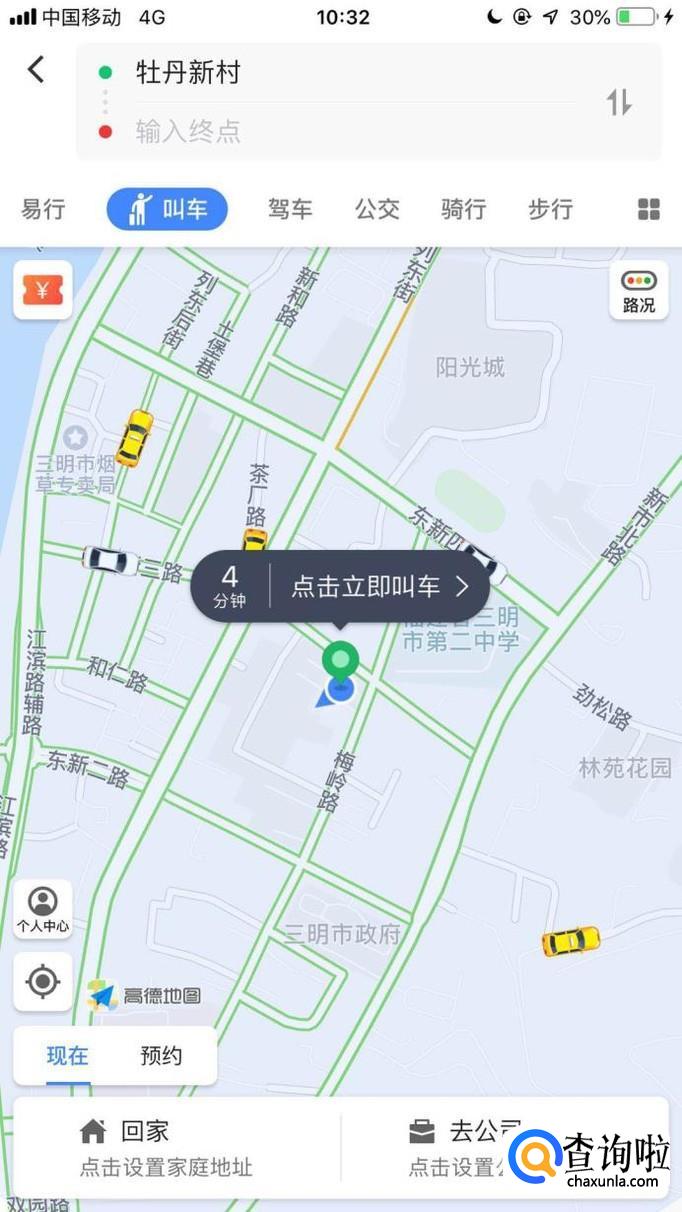 然后输入你的起始点并点击立即叫车,如下图所示。