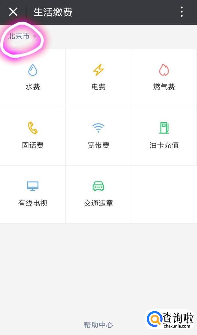 进入缴费界面,能够看到很多项业务,先不要着急去点,先确定左上方的地点是否是自己要缴费的所在城市。如果自动定位地址错误,可以点击显示的地点,重新选择城市。