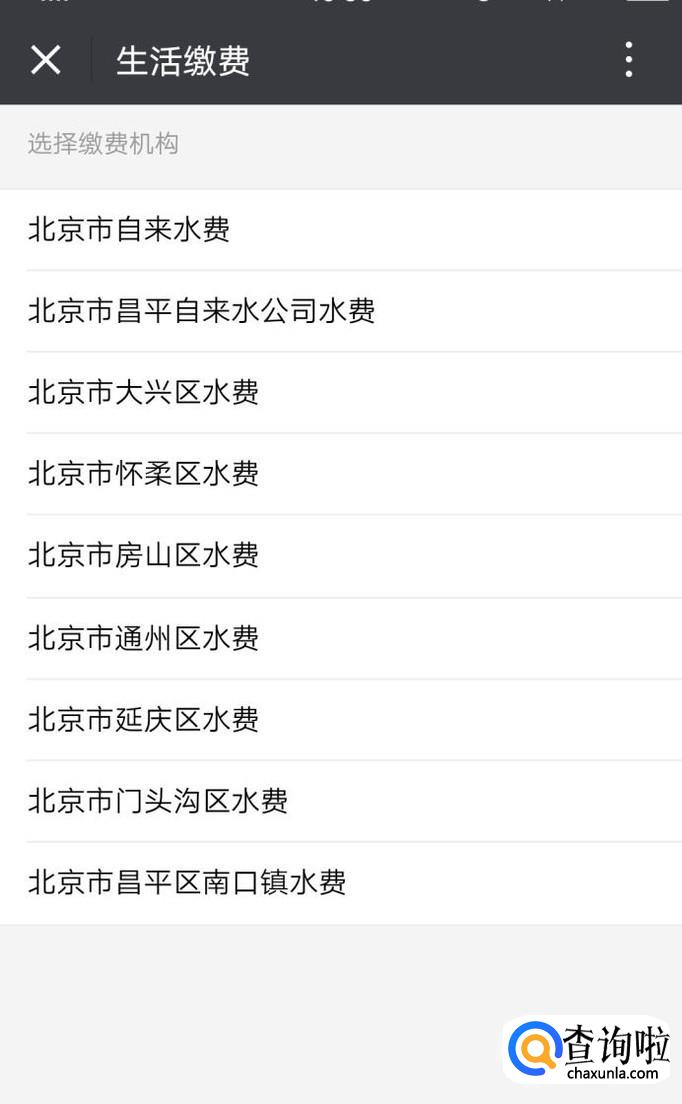 以北京为例,确定好地点后,点击要交费的项目,比如要交水费,就点水费,点进去后会让你选缴纳水费的营业厅,选择自己的所在区域即可。